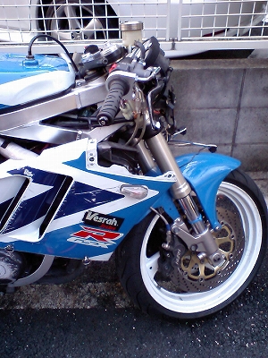 やり始めてからだいぶ時間がたつヘッドライト修理 修理したら今度はカウルが着かなくなるし、ということでまた修理 そしてついに完成しましたよ! 原因はやっぱりカウルステー いろいろあってはずせない左ミラーをカウルごともぎ取って破壊することになりましたが、そのご順調に修理は進み一応元の形にはなりました メンドウなので硬化後削っていないため不恰好ですがね(爆 ヘッドライトだけついてる車体にアッパーカウル装着 ヘッドライトとアッパーをボルト4本でとめて、次はサイドカウル 左をつけて、右を・・・・・・・・ あれぇぇぇΣ(・ε・;) なぜか右カウルはアッパーに干渉してサイドと車体を止めるボルト穴がずれる・・・ しかたないので、一度アッパーとサイドをつなげてるボルトをはずしてサイドと車体を先にとめてから、アッパーとサイドを気合でとめる なんとか着いたものの、サイドカウルが若干たわんでる。。。。。。。。 コケたときにどっか曲がってたのかな? 最後は歪んでるカウルステー ここはアッパーの穴にあわせて気合で曲げる トルクレンチをなんか倉庫にあった金具で固定して力ずくでまげてあわせる そしたらバッチリ! ミラーつけて終了 段差に乗ってもアッパーが上下にゆれることはなくなりました。・゚・(ノ∀`)・゚・。 そのあとノリでリアサスを今のオクムラにO/Hだしたときのセッティングから純正に戻してみようと、前かっておいたフックレンチでダブルナットを緩めていく フックレンチじゃ時間かかってしかたねぇ・・・・orz マイナスとプラハンが必要かな イニシャルってどっからどこまでの長さだ? わからないまま勘で緩めたんだけど怪しいな(爆 とりあえずこれでどのくらい変るもんだか やっと不動車から復活したけど寒くて乗る気が起きないな(;´Д`) PR |